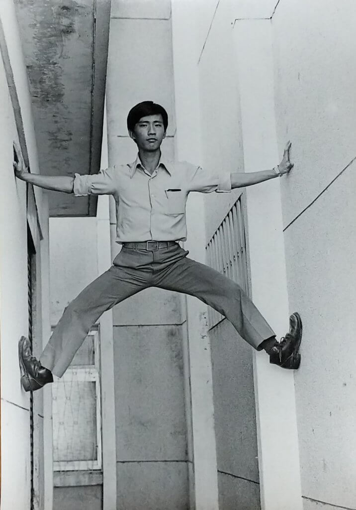 中學時期時期受同學影響開始對武術產生與趣,唯受課業壓力並無機緣學習,袛能在下課空檔與同學拉筋壓腿,玩雙槓。